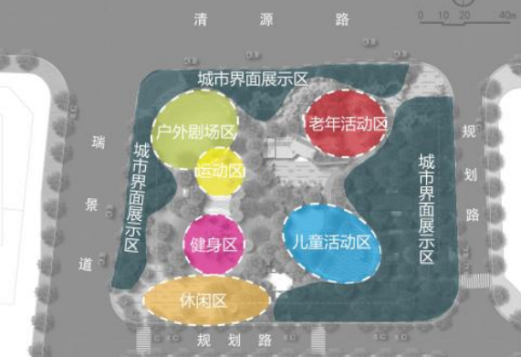 公園設(shè)計注重動靜空間的合理劃分區(qū)塊,由戶外劇場區(qū)、老年活動區(qū)、運動區(qū)、健身區(qū)、兒童互動區(qū)、休閑區(qū)、密林區(qū)組成。在有限的范圍內(nèi)滿足不同年齡段、不同愛好人員需求。